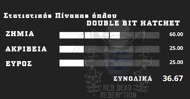 Το Double Bit Hatchet είναι ένα όπλο στην κατηγορία Thrown Weapons / Melee Weapons που εμφανίζεται στο Story Mode του Red Dead Redemption 2.