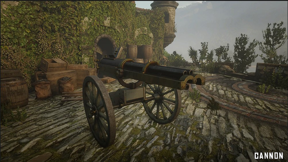 Στο Single Player, ο παίκτης έχει την ευκαιρία να χρησιμοποιήσει μεγάλα κανόνια λείας οπής για την άμυνα μιας οχυρωμένης θέσης που ονομάζεται El Presidio. Τα κανόνια βρίσκονται επίσης στη θέση τους στο El Presidio για την καμπάνια Undead Nightmare και στην Free Roam για πολλούς παίκτες.
