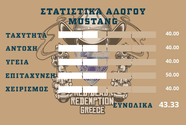| Grullo Dun | 130.00 | 4 | 4 | 3 | 2 | Κλοπή/Άγριο |