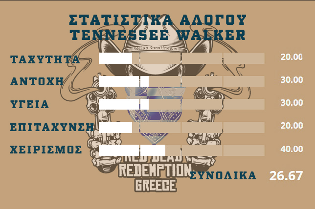 | Gold Palomino | 60.00 | 3 | 4 | 3 | 2 | Κλοπή / Άγριο |