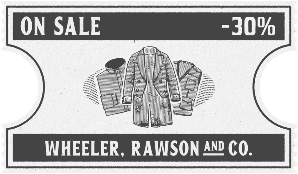 Αγοράστε επιλεγμένα ρούχα περιορισμένης διάρκειας που επιστρέφουν στον Κατάλογο Wheeler, Rawson & Co. έως τις 30 Μαρτίου: