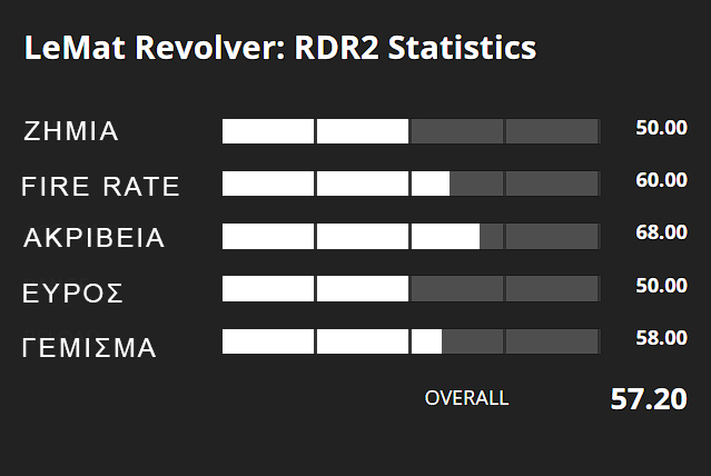 Το LeMat είναι το πιο ακριβό περίστροφο τόσο στο Red Dead Redemption 2 όσο και στο Online, κοστίζει 172$ στο Red Dead Redemption 2 και τα διπλάσια στο Online καθώς έχει 317$ .